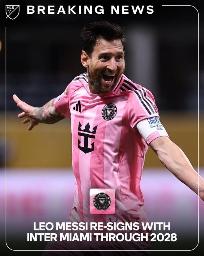 周四,美国职业足球大联盟宣布将与迈阿密国际队的合同延长至2028年。届时梅西将年满41岁。 2023年7月15日,梅西离开巴黎圣日耳曼,以自由球员身份加盟迈阿密国际。在代表迈阿密国际队的前七场比赛中,梅西场均打进10球并送出助攻,帮助迈阿密国际队赢得了其历史上的第一座奖杯——北美联赛杯。 2024赛季,梅西率队夺得了球迷盾牌,这是他职业生涯获得的第46座奖杯。这是迈阿密国际队首次夺得常规赛冠军。 2025赛季,迈阿密国际队未能卫冕球迷之盾,但梅西在常规赛中打进29球并送出17次助攻,在得分榜和助攻榜上均排名第一。梅西为国际迈阿密出战82场比赛,贡献71球、37次助攻和108球,成为球队历史最佳射手。梅西与迈阿密国际队的合同是2025年12月31日签约。布斯克茨和阿尔巴宣布退役后,梅西选择继续自己的职业生涯。著名记者罗马诺上周透露,迈阿密国际已经与梅西达成协议,美国职业棒球大联盟也已经完成了所有调查程序。周四,迈阿密国际继续在社交媒体上发布梅西签名的视频。最终,迈阿密国际宣布与梅西续约三年。梅西将为国际迈阿密效力到2028年12月31日,届时他将年满41岁。
